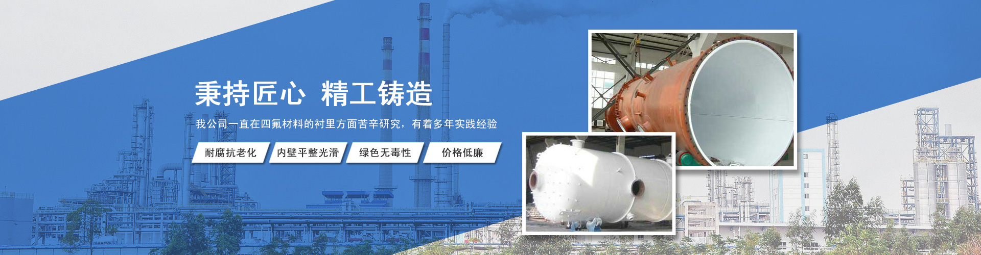 我公司專業生產防腐設備,主要產品有:鋼襯四氟、鋼襯四氟儲罐、鋼襯四氟管道、電子級襯四氟設備,鋼襯塑儲罐/反應釜、緊襯四氟換熱器、鋼襯塑管道、鋼襯四氟攪拌槳、鋼襯塑攪拌槳等等。產品可廣泛應用于化工、氯堿、海水淡化、印染、顏料、儲運、電廠、稀土、冶金、電子、環保、制藥、釀造等行業...
